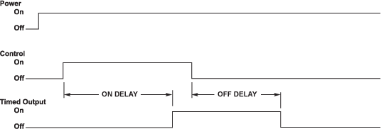 - If control changes during the delay time period, the output turns off and the delay time resets.