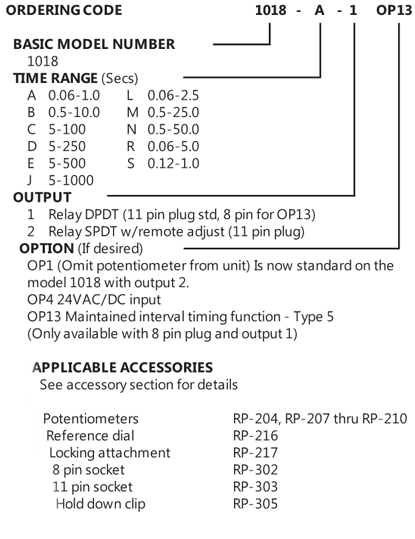 1018 is a general purpose off delay timer, capable of a pulse interval timing function or maintained interval timing function.