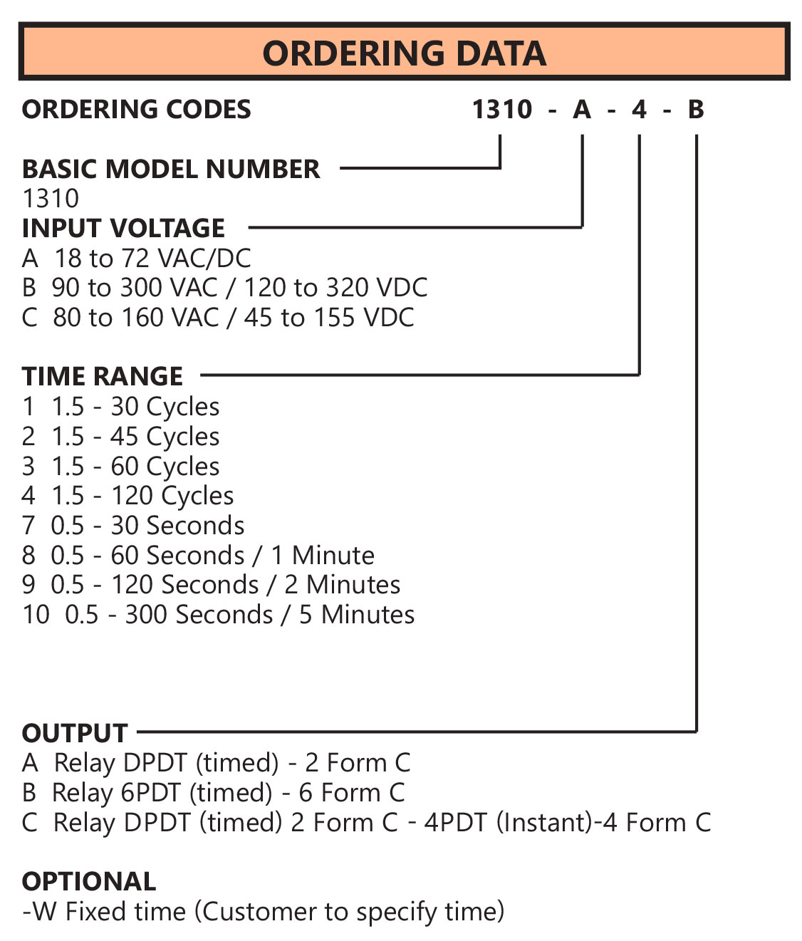 The 1310 is a control-on delay, built specifically for continuous duty operation.